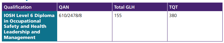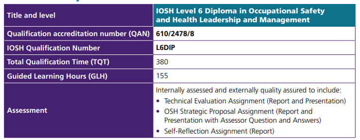 IOSH Level 6 Diploma in Occupational Safety and Health Leadership and Management